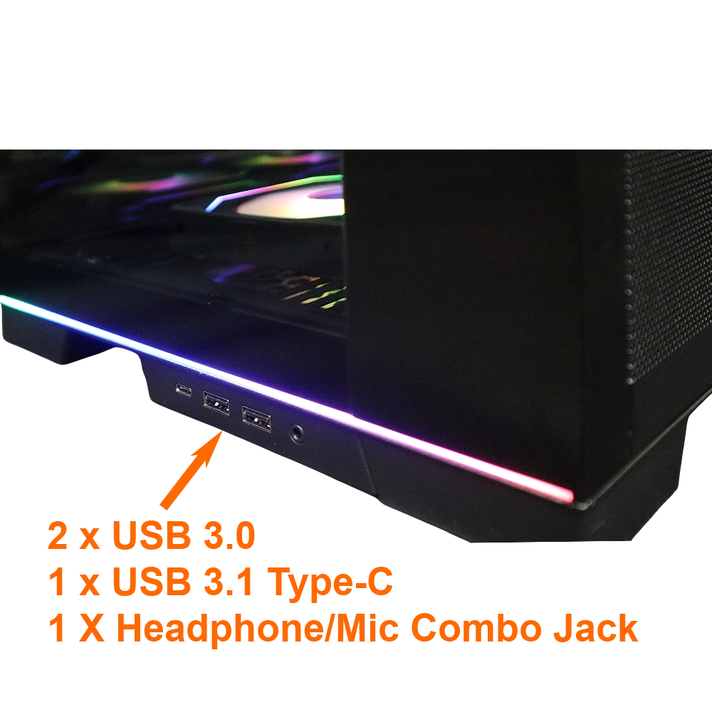 Features two high-speed USB 3.0, a USB 3.1 Type-C and an audio combo jack port on front of the case for easy access.