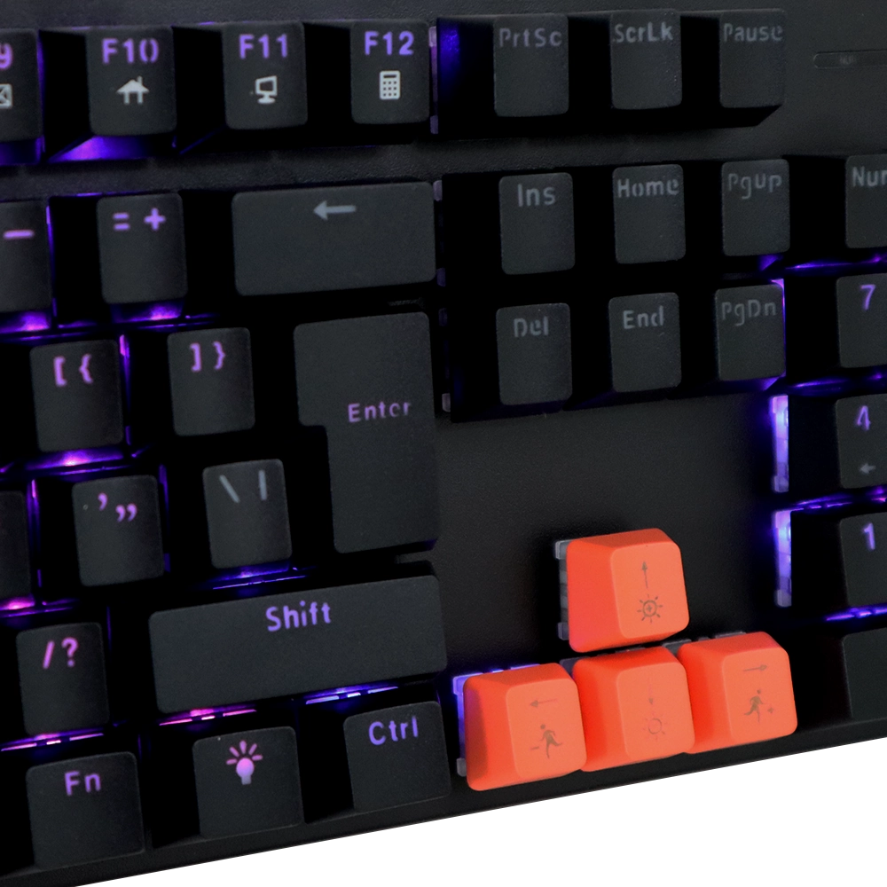 The hot swappable Blue switches provide a distinct tactile bump and produce a satisfying click sound providing audible feedback. Anti-ghosting technology ensures that your key presses are sent without error and in the order pressed. The tactile bump provides a slight resistance, giving you a sense of confirmation with every keystroke. There are 23 RGB color modes which can be changed with a press of a button (no software needed).