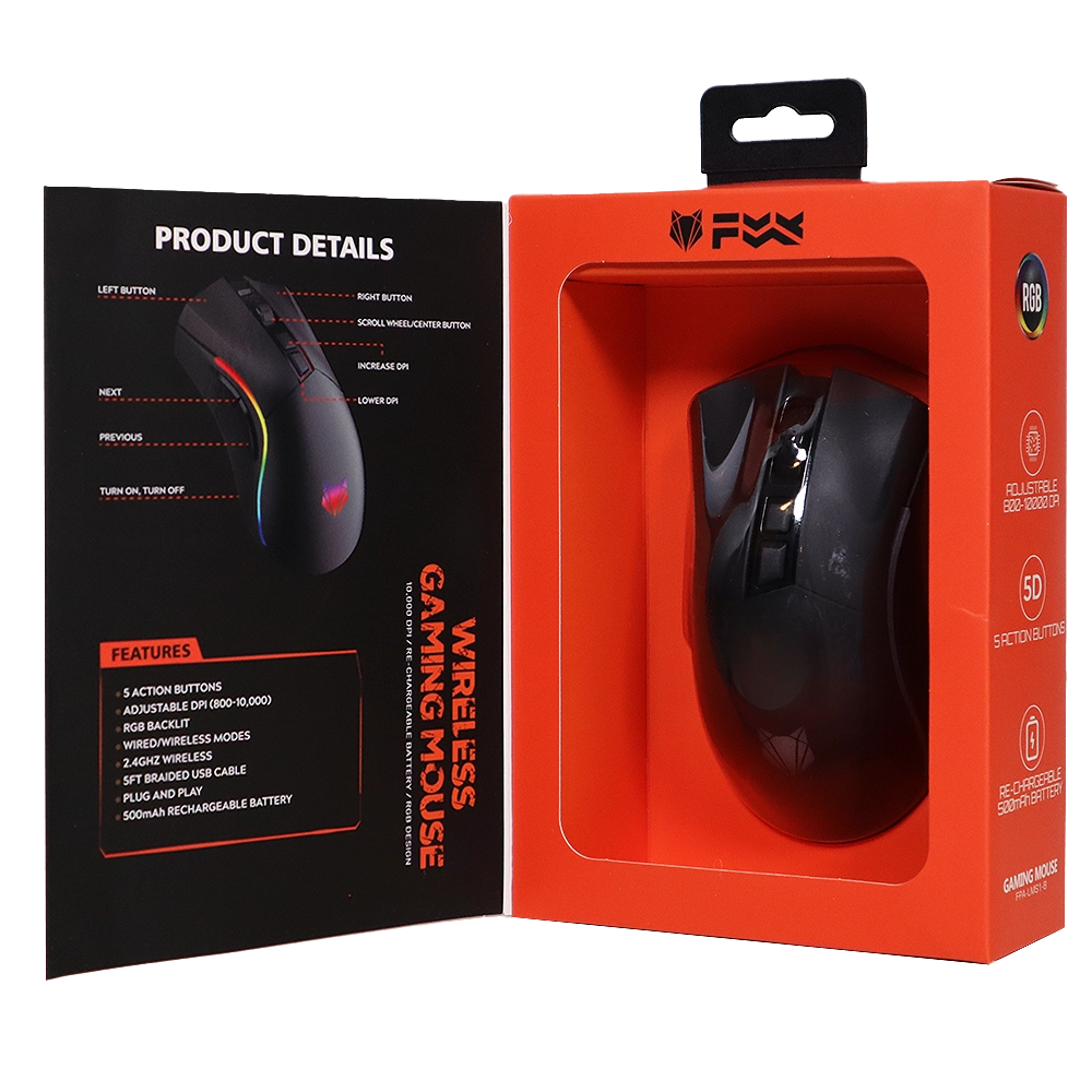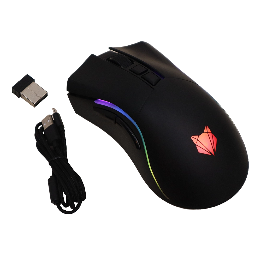Experience the freedom of wireless connectivity which provides more freedom of movement. The lightweight ergonomic design enables fast and accurate movements for better in-game performance. 5-action buttons give you more control over your gameplay. Connect via 2.4Ghz using the included USB dongle of via the braided USB cable which also charges the internal battery. The RGB lighting provides ambiance on your desktop.
