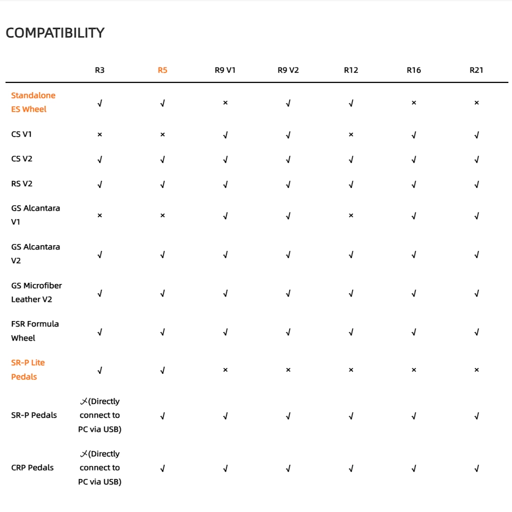R5 Direct Drive Wheel Base. The R5 DD base delivers a punchy 5.5Nm DD power with ultra-low torque ripple to achieve an instant reaction. Its intelligent temperature control and aviation-grade aluminum base housing offer the sim racers safe and reliable performance. The motor encoder sports a 15-bit ultra-high resolution, ensuring steering is accurate and gives a true-to-life feel