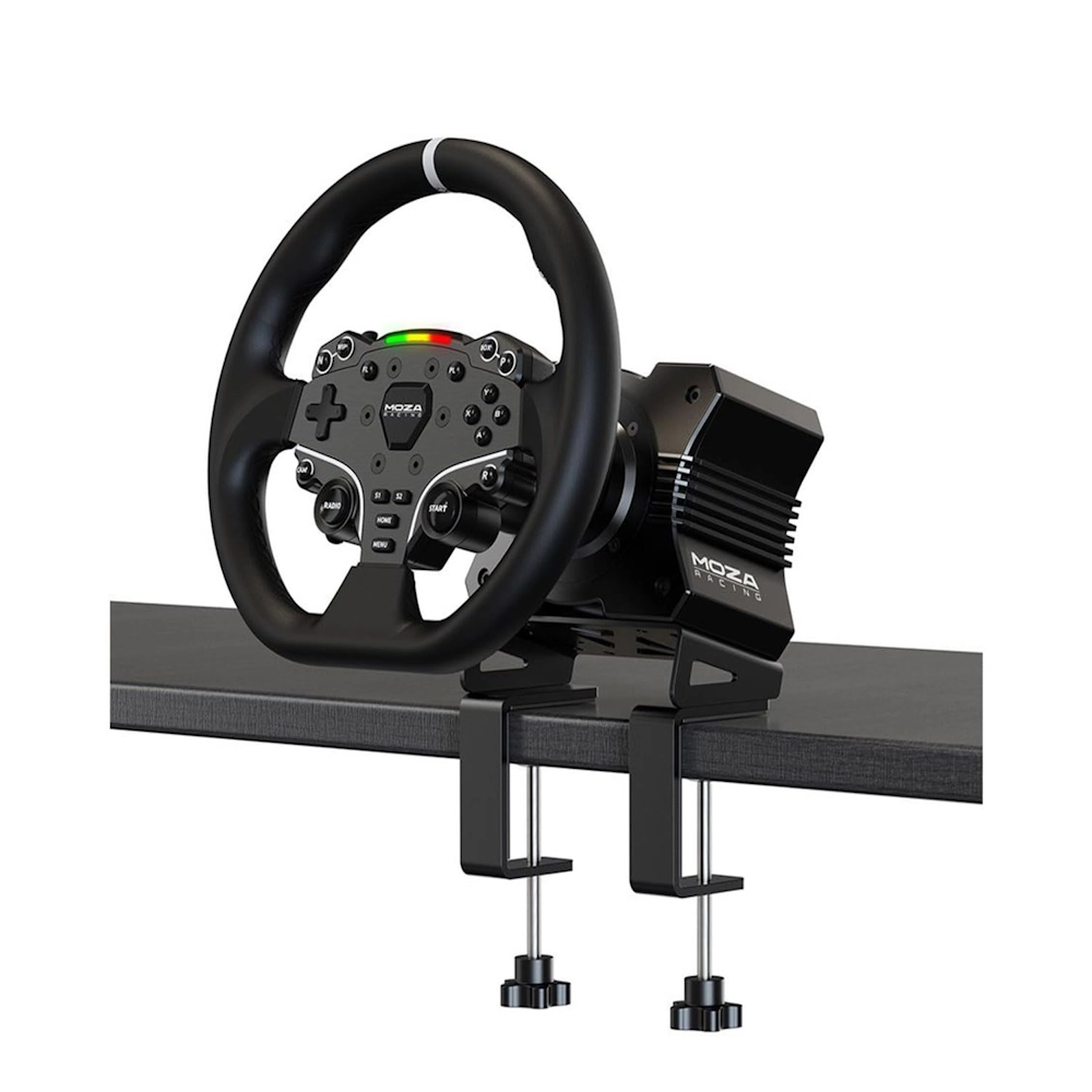 ES Steering Wheel. This 11-inch round gaming wheel consists of microfiber leather grips, aluminum alloy rim, 22 customizable buttons for maximum immersion and extended use. The racing-level Quick Release system allows for effortless wheel rims changing, and MOZA’s signature RGB sequential flow shift light indicator ensures every shift is just right
